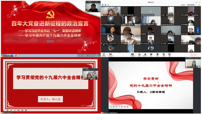 百年征程波澜壮阔,百年奋斗成就辉煌。为学习贯彻党的十九届六中全会精神,深入领会其精神内涵,yl6809永利官网于2022年1月7日至8日开展线上宣讲活动。此次宣讲由yl6809永利官网团委书记曹玉祥、校团委学生宣讲团成员李婕和阚心蕊主讲,yl6809永利官网全体团员青年和第十三期青马班成员参加。
