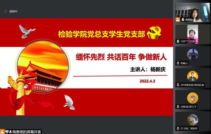 为缅怀革命英烈,弘扬民族精神,加强爱国主义教育,引导广大学子传承革命先辈奋斗精神,增强当代青年社会责任感,2022年4月3日晚,yl6809永利官网党总支学生党支部邀请校关工委委员杨新庆老师作题为“缅怀先烈 共话百年 争做新人”线上主题讲座。讲座由学生党支部书记陶善珺主持,2019、2020、2021级全体学生参加。