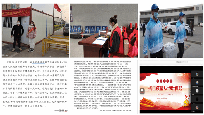 “云”班会上,三名“抗疫”志愿者与同学们一起分享了经验体会。医学检验技术的夏佂帆同学、卫生检验与检疫专业的余楠楠同学、黄念洪同学在疫情期间主动申请成为一名志愿者,他们用自己的行动践行当代青年的责任和使命。弘扬家国情怀,敢于担当,勇于奉献,助力疫情防控,他们用自己的方式丈量着青春,用实际行动谱写青春热血。在这场无声的战役中,他们深刻表示生物安全的重要性,广大人民群众的是否具有维护维护国家生物安全的安全意识,直接关系到防疫工作的开展能否得到政府和社会公众的有效支持。认识不到位、安全意识上不去,依法防疫工作就无法取得事半功倍的效果。