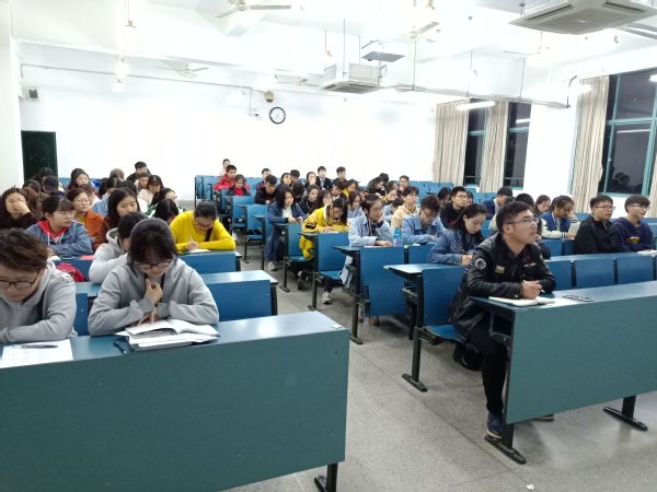 为加强学生对传统文化的认识,提高思想道德素质,yl6809永利官网青马班于11月9日晚七点在1303教室再次开课。本次课程邀请了马克思主义学院的陈健博士为大家讲解《庄子的生命智慧》,参加本次课程的有yl6809永利官网团委副书记曹玉祥、青马班全体成员、入党积极分子、十九大学习小组成员等。