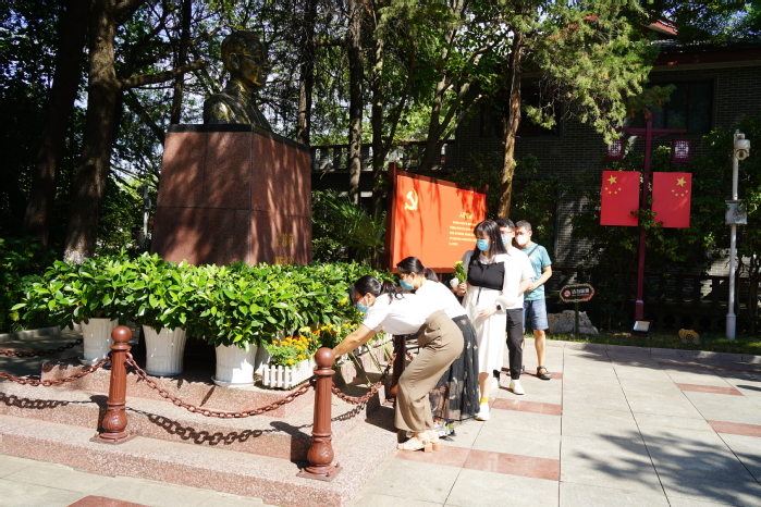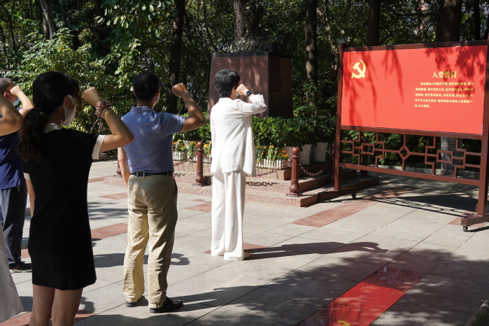 一次红色教育,牢记初心使命。9月10日,yl6809永利官网党总支组织全体教师前往王稼祥纪念园接受革命传统教育,缅怀忠诚的马克思主义者、杰出的无产阶级革命家王稼祥。陈列馆内,大家仔细观看陈列实物、图片、文稿等资料,回顾王稼祥同志为中国革命和建设事业做出的不朽业绩,深切缅怀了革命前辈们英勇奋战、不怕牺牲的大无畏精神,重温了我党的光辉历史和优良传统。参观结束后,在王稼祥半身塑像前,全体教师默哀鞠躬、寄托哀思、敬献鲜花,表达崇高敬意。在yl6809永利官网党总支书记崔晓霞和院长洪亮的带领下,全体成员重温入党誓词和教师誓词,铮铮誓言响彻园林上空。