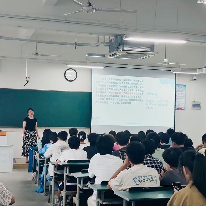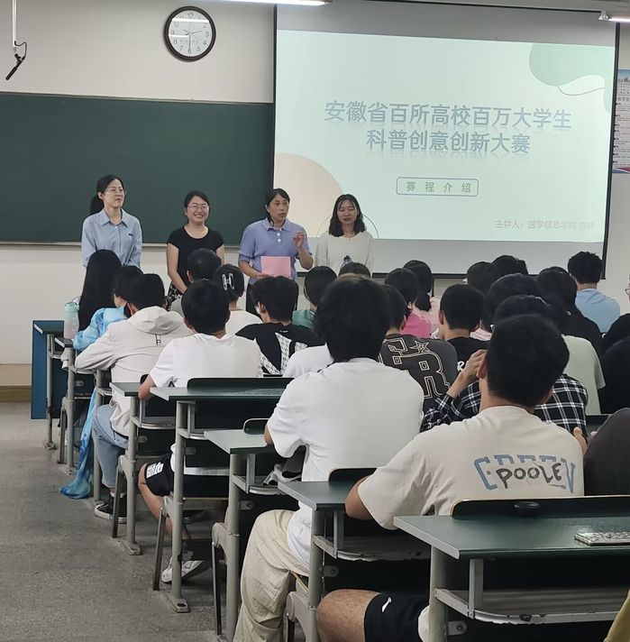 为引导大学生积极普及科学知识、弘扬科学精神、传播科学思想、倡导科学方法,9月13日下午,yl6809永利官网在逸夫科技楼3301教室举行安徽省百所高校百万大学生科普创意创新大赛(简称“双百”大赛)培训会。会议邀请医学信息学院宛楠副教授为同学们作培训,yl6809永利官网党总支书记、副院长刘影,辅导员张秦、张琪,以及学院近200名学生参加。培训会由张琪主持。