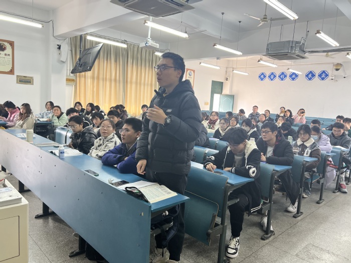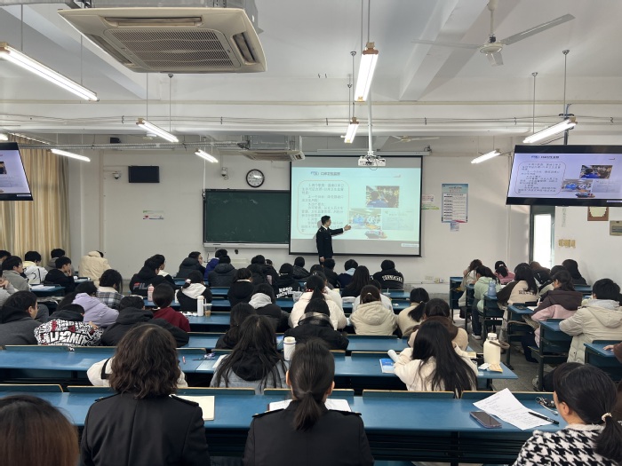 随后,胡久会在1403教室作“新时期海关卫生检验业务发展”专题讲座,2023级卫生检验与检疫专业辅导员、班主任和年级全体同学参会。讲座现场,胡久会由一个买草帽的故事切入主题,分享了芜湖海关的宣传片。他通过幽默风趣、浅显易懂的语言,从“海关的内部管理”和“海关的业务职责”等方面向同学们详细介绍了海关的发展历史,并提醒大家要珍惜大学时光,在求学期间注重强化专业知识和业务能力的锻炼。互动环节中,胡久会针对现场同学提出的疑惑,一一进行详细解答。
