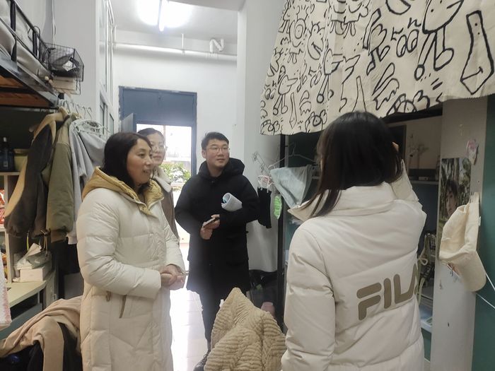 师生互动进宿舍。2月28日,学院党委书记、副院长刘影带领年级辅导员和兼职班主任走进学生宿舍,与学生深入交流寒假期间的学习、生活、考试等相关情况,并提醒学生做好开学之后的学习和寝室卫生工作,养成良好生活习惯,充分展现新学期新气象。