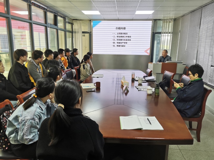 随后,方四新通过PPT形式,从公司基本概况、职业健康工作情况、履行社会责任等方面向在座师生宣传了公司情况,并与大家围绕就业相关问题进行了交流。