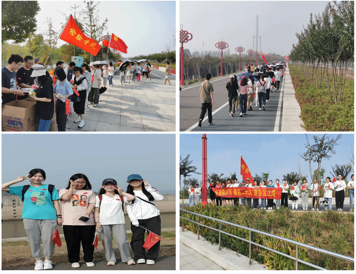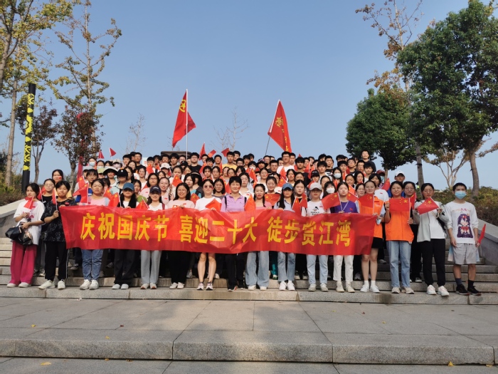 红旗漫卷迎国庆,初心激荡映朝阳。为庆祝中华人民共和国成立73周年,向伟大祖国致以崇高敬意,同时让青年学子接受爱国主义教育,yl6809永利官网于10月1日开展“庆祝国庆节 喜迎二十大 徒步赏江湾”活动。