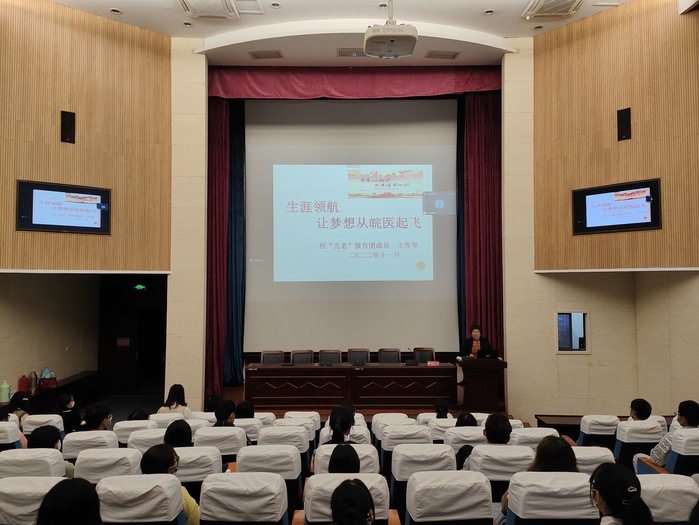 为帮助新生更好地适应大学生活,树立好人生目标,度过美好而充实的大学生活,11月3日,yl6809永利官网众禾学堂联合校关工委“五老”报告团成员王雪琴在逸夫科技楼一楼报告厅作“生涯领航——让梦想从皖医起飞”讲座。讲座采取线上、线下相结合的方式进行,yl6809永利官网党总支书记崔晓霞,2022级辅导员张琪及部分新生现场参会,会议由学院关工委秘书陶善珺主持。