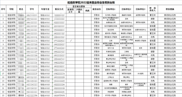 学院2022届就业领导小组自成立之日起,就开始统筹部署毕业生帮扶工作,并建立帮扶台账。近日,根据学校就业工作要求,进一步完善了就业帮扶台账,将家庭经济困难毕业生、就业困难毕业生的就业工作作为毕业生就业工作的重点,更加精准地为每一位未就业的毕业生推送相关招聘信息,帮助他们实现目标岗位就业。