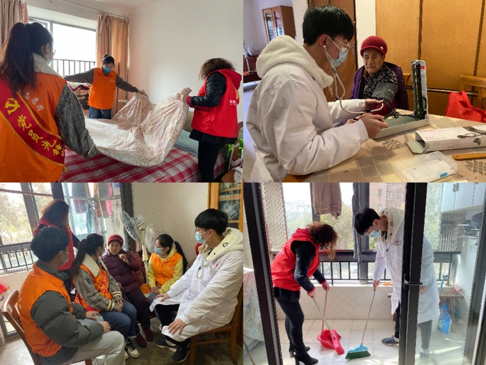 第二队跟随社区负责人前往四位老人家中进行探望。志愿者们在帮他们量完血压之后,认真倾听了他们关于身体健康的困扰和疑虑,根据不同身体情况对饮食和生活情况给出了合理的建议,还和他们坐在一起拉拉家常,谈谈心事。由于老人们大多身体不便,志愿者们还主动为老人烧水倒水,帮忙套被罩、叠被子、打扫地面等,在离开时还送上了准备好的小礼品。老人们满面笑容,一位奶奶慈祥地说到:“感谢你们的探访和帮助,帮了我好多忙,也让我感受到了陪伴,期待你们下次再来啊。”在同学们给老人带去温暖的同时,也让大学生志愿者们更深刻地理解了活动的意义和价值。
