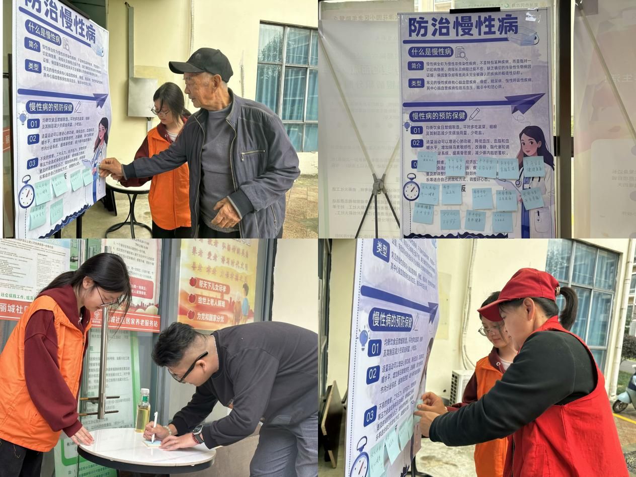 秋风卷落叶,严寒气温降。yl6809永利官网“成长对话”志愿团联合2023级卫生检验与检疫1班团支部于近日在文津花园社区开展了以“慢性病防控千万家,健康生活你我他”为主题的志愿活动。此次活动旨在通过普及健康知识、推广健康生活方式,提高社区居民对慢性病的认识和预防能力。