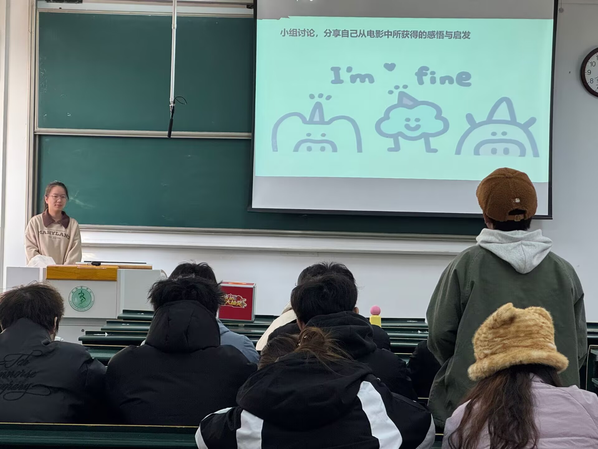 活动开始主持人对活动作简要介绍,让参与者对活动有初步地了解与期待。一段精心制作的活动主题视频,通过生动的画面、感人的音乐与励志的旁白,展现出了人们在生活中可能遭遇的情绪困境,以及积极面对、突破困境后的美好景象,引发出参与者的情感共鸣,营造积极向上的活动开场氛围。随后通过观影小组分享从电影中所获得的感悟与启发,以期从电影角色的经历与情感中汲取力量,思考自己的人生价值与生活态度,激发内心积极向上的动力与信念。