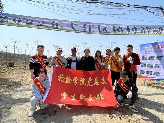 阳春三月,丽日晴空,暖风拂面。为贯彻落实习近平总书记“绿水青山就是金山银山”的绿色发展理念,提高支部党员环境保护意识,3月9日,在第44个植树节来临之际,yl6809永利官网党总支学生党支部在校师生党员参与由弋江区城市管理局主办的“为文明增绿,为弋江添彩”2022年弋江区义务植树活动。