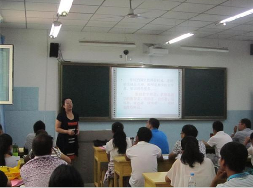 8月14日,张喜荣教授不顾旅途的劳顿,投入到了紧张的培训工作中。张教授做了“初中物理课堂教学改革的思考”专题讲座,张教授的讲座在学员中引起了强烈的反响,学员们说“张教授用自己的切身体会和学术造诣,为我们上了生动的一课,使我们对初中物理教学有了更深的认识,希望二师以后能邀请更多这样的专家来作讲座,让我们开阔眼界,增长知识。” 为了搞好这次培训,张教授多次修改讲稿。她说:“我站在讲台上看着一张张渴望知识的面孔,无比激动,真想把自己头脑中所有的东西都传授给他们!”