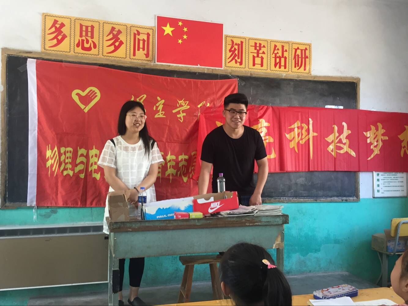 6月1日,儿童节当天,物理与电子工程系部分教工党员、学生党员和重点发展对象、团学干部、电子科技创新协会和汽车文化与服务协会骨干成员共26人来到了Beat365官网精准扶贫帮扶单λ曲阳县罗家峪村的中心小学,为山区的孩子们送上了一场以“点亮科技梦想,助力扬帆启航”为主题的科学实验展示活动,和孩子们共同度过了一个欢乐的儿童节。