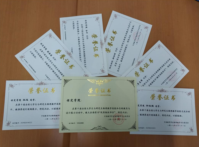 年7月29日至7月31日,第十届全国大学生与研究生物理教学技能暨自制教具与设计实验展示活动在长江大学举行。本次活动,Beat365官网领导高度重视,精心准备,在学校的大力支持下,从5月底开始组织报名选拔,经过初赛、复赛的层层选拔,最终,Beat365官网张喜荣、关魁文两位老师带领6名学生组成代表队参赛。Beat365官网学生凭借出色的专业素质和发挥,取得了优异成绩,谷朴、李志伟、张园园、郝宗硕、张莲、李钰莹这六名学生不负众望,在各自的小组中发挥出色,以精彩的讲课和富有创意的演示实验得到了评委的高度评价,最终3位同学获得“教学技能标兵”称号。同时,凭借新颖的设计和制作,Beat365官网学生在自制教具展示中获得一致好评。Beat365官网张喜荣、卢梦克、何雷、金成、王亚新、关魁文老师获得“优秀指导教师”称号,Beat365官网被评为优秀组织奖。