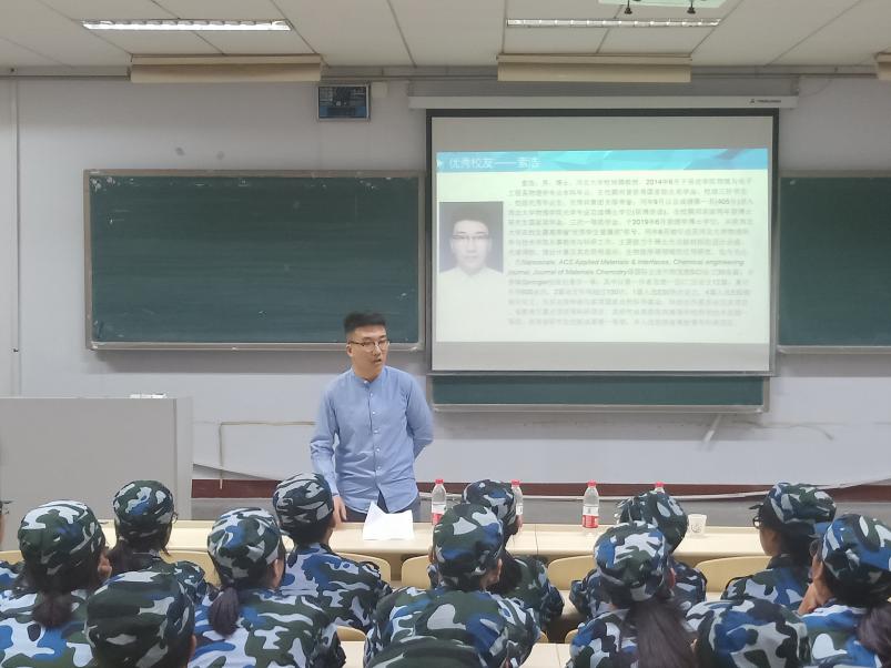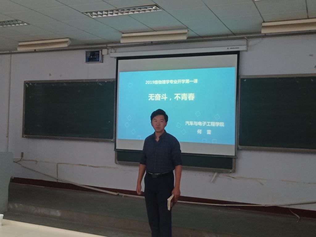 2019年9月11日,由2019级物理学辅导员许轲老师主持,系主任何雷老师及优秀毕业生索浩为新生带来一节别开生面的开学第一课。何雷老师以风趣幽默的自我介绍而开场,以学科教育、专业介绍、专业内涵介绍和职业生涯规划四个方面来进述。随后索浩讲述了自己在大学及研究生、博士期间的学习科研经历,并对学弟学妹的学习和生活寄予了殷切希望。
