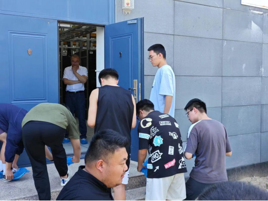 同学们在企业工程师的带领下,来到了电信运营商机房。同学们按照运营商规范学习了IDC机房参观须知,穿戴鞋套,并上交暂存了手机。分好组后,同学进入机房,屋内整齐排列的设备和闪烁的指示灯立即吸引了同学们的注意。