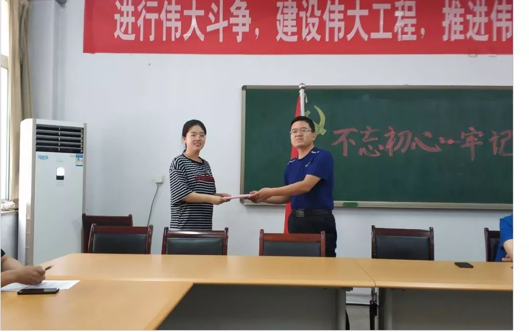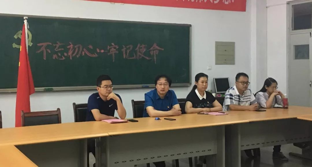 为加强毕业生党员教育,强化毕业生党员意识,引导和鼓励广大毕业生党员坚定理想信念,以饱满的热情和昂扬的斗志投身社会,在2019届毕业生即将离校之际,Beat365唯一官方网站学生党支部于6月17日在G–116召开 “不忘初心,牢记使命”——2019届毕业生党员最后一次党课。Beat365官网党总支书记王文军同志、党总支副书记王运辉同志、学生党支部书记赵茜同志、关魁文同志、贾柠宁同志及毕业生党员出席此次活动。