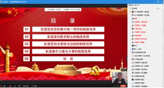 本节党课由Beat365官网学生党支部书记赵茜同志主讲,以《在疫情大考中彰显中国特色社会主义制度优势》为主题,结合中国人民抗击疫情过程,从彰显坚持党的集中统一领导的制度优势、彰显密切联系群众的制度优势、彰显坚持全面依法治国的制度优势、彰显集中力量干大事的制度优势、结语:打赢疫情阻击战彰显“四个自信”这五个方面进行了阐述。