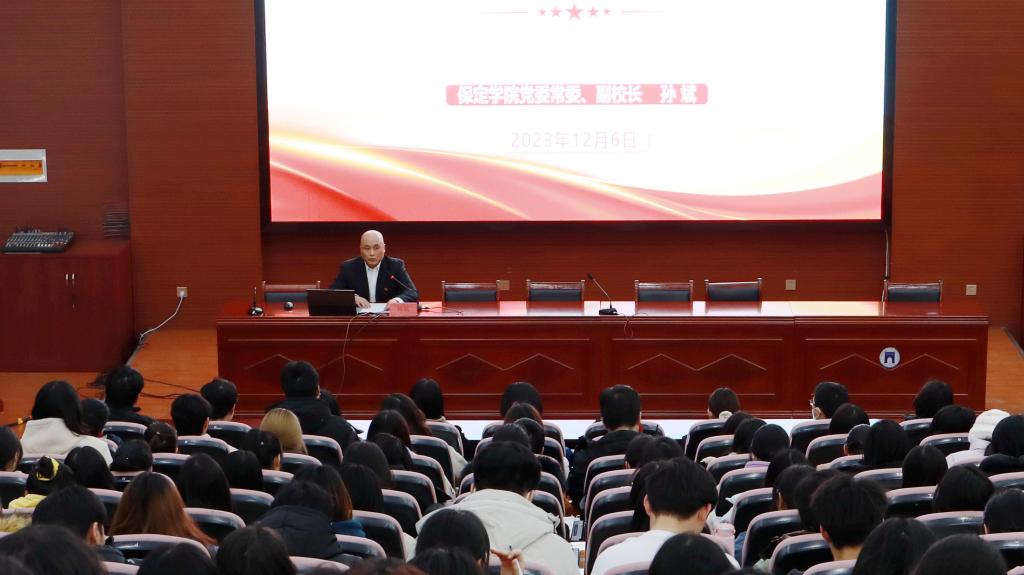 12月6日下午,党委常委、副校长孙斌在昌绪学术厅以《做一名信仰坚定 品质优秀 本领过硬的新时代大学生》为题,为Beat365官网学生讲授思政课。