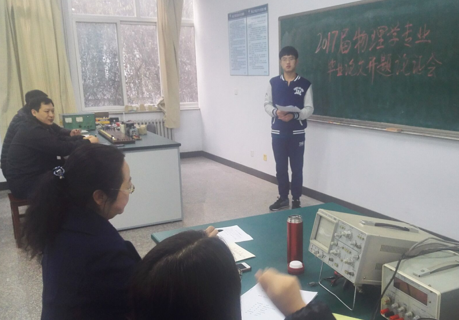 2016年12月2日,我系召开2017届物理学本科毕业论文开题论证会,本届物理学本科毕业生46人,指导教师老师人数16人(其中博士研究生2人,正教授1人,副教授6人)。本次开题论证会会场气氛紧张有序,圆满完成了2017届本科毕业生开题工作。