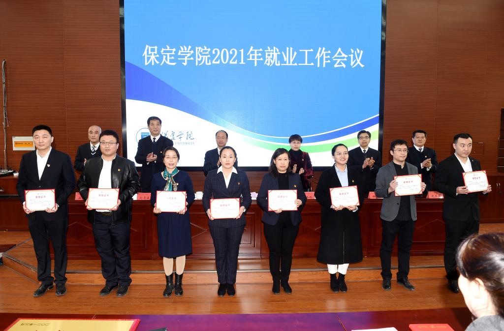 会上,我校党委书记胡连利作了题为《坚持学生至上 提高认识 明确责任 强化服务 狠抓落实 推动我校2021届毕业生更加充分和更高质量就业》的讲话。他充分肯定了我校2020年就业工作取得的成绩,向所有为就业工作辛勤付出的教职工表示感谢。与会领导为荣获“就业先进集体”“就业工作先进个人”和“就业工作个人贡献奖”的单位和个人颁发了奖牌、证书。