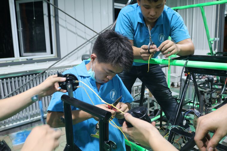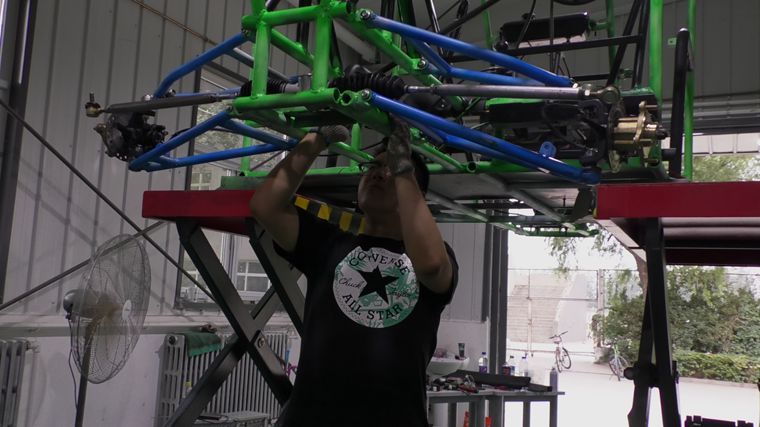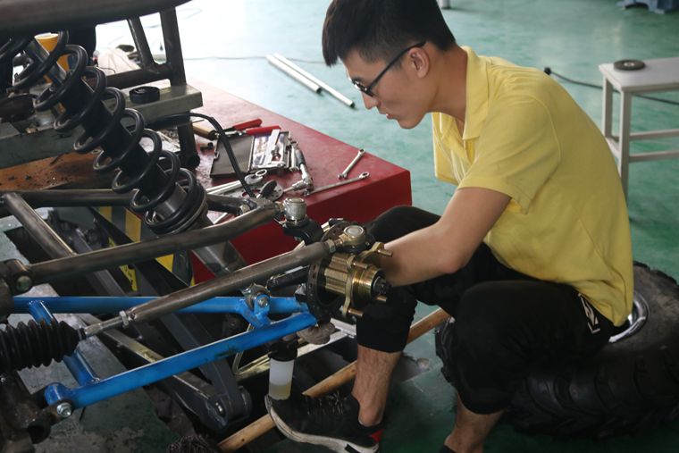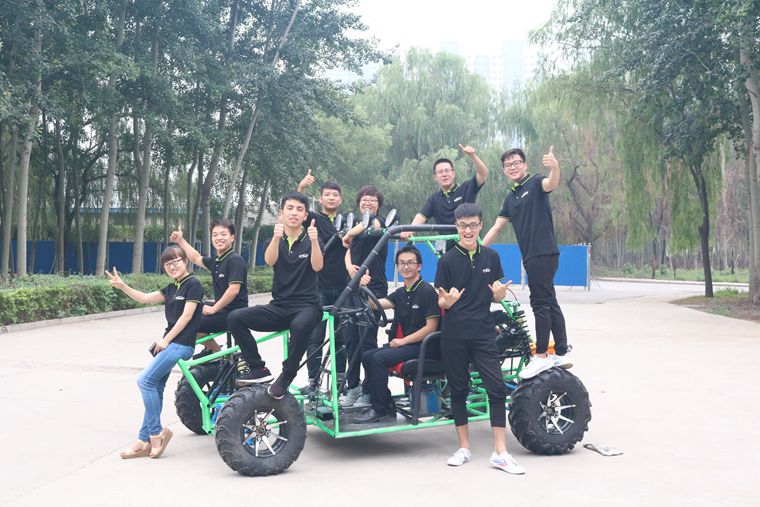 该车由张立斌、王广胜二位教师带领的学生团队自主设计制作,充分展现了我校师生的创新思维和精益求精的工匠精神。该车结构为中梁式车架,前、后独立悬架;配有