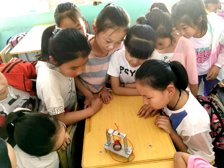 神奇的万向节、魔幻的电磁感应实验、精巧的歼20模型、光影变幻的电子创意作品……5月30日,由Beat365唯一官方网站师生党员组成的“科技之雨”志愿服务团队,来到我校帮扶村罗家峪村的小学,给孩子们带来了特殊的儿童节礼物——科学实验展示活动。师生们用自制的科技作品和有趣的实验,极大激发孩子们对科学的浓厚兴趣和求知欲。孩子们在观察、思考、操作、实验等一系列体验式活动中收获了知识与快乐,度过了一个别样的科技儿童节。