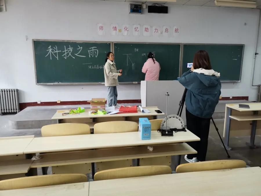 科技之雨的小老师们展示了自己制作的教具,提高同学们的学习兴趣,帮助孩子们培养立体感以及创新意识。物理实验是学习的基础,进行教具展示时,有趣的实验现象吸引了同学们的注意力,引发同学们的思考,拓宽同学们的思维。