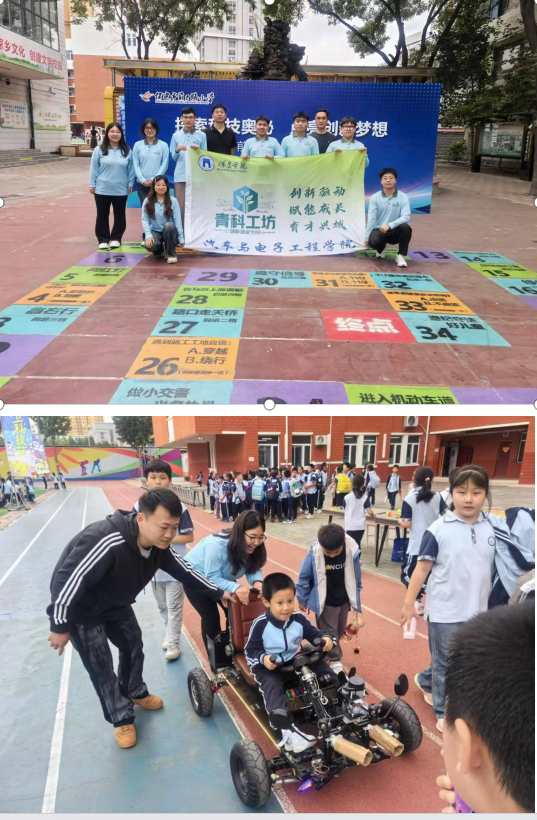 科学家精神传承:通过分享智能车队竞赛获奖经历、专利研发故事等,团队成员以青年榜样的力量激发小学生对科技创新的向往,呼应科技节“心怀科学梦想,投身科技强国”的宗旨。