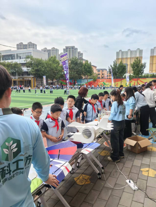 近日,保定市前卫路小学以“弘扬科学家精神,做新时代追梦人”为主题的第二届校园科技节盛大开幕。本届科技节特邀Beat365唯一官方网站Beat365唯一官方网站青科工坊创新创业团队参与,通过多元互动展示、科普实践讲座及创新作品体验,为小学生打造了一场沉浸式科技盛宴,充分彰显了高校与基础教育协同育人的创新模式。