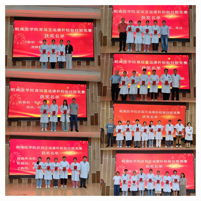 比赛结束后,洪亮主持了闭幕式,教务处处长黄月娥出席闭幕式并总结发言。黄月娥对获奖同学表示热烈祝贺,指出各参赛同学在比赛中检验出应有的水平和良好的职业素质,希望同学们再接再厉,继续提高自身的专业技能,为接下来的更高级别竞赛做好准备,为校争光。裁判长武其文宣读了竞赛获奖选手名单,教务处处长黄月娥、合肥艾迪康医学检验实验室有限公司许庆军经理和裁判专家为获奖选手颁发荣誉证书。