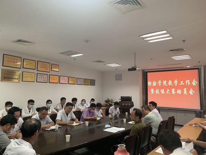 为切实加强学院教学工作,做好第二届华东六省一市“伊利康杯”大学生医学检验技能大赛选手的培训工作,充分调动教师与选手的参赛积极性。6月30日,yl6809永利官网院长洪亮携秘书和教研室主任一行赴一附院检验科召开教学工作暨技能大赛动员会。检验科教研室主任、秘书、部分老师及全体参赛学生参加会议。会议由洪亮主持。