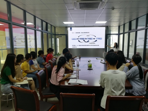 会上,文育锋首先强调了师生暑期留校安全问题,要求学生要严格服从管理,并列举了科研、生活、交通、防暑等方面可能存在的安全隐患并加以防范,要求每位留校学生和指导老师坚持每日检查和汇报制度。其次对每位留校学生提出期望,希望在短短留校期间要制定目标,在指导老师的指导下完成自己的大创、大学生科研基金等科研活动,多看专业文献,定期汇报进展和存在的问题。接着,孙恩涛从选题、科研的基本步骤、思路的转变等方面介绍了大学生如何做科研。随后,两位在读研究生就她们目前开展的项目和实验进行汇报交流,与会老师们对实验思路及技术方面的问题也提出宝贵意见,并积极鼓励本科生参与各项实验。最后,参会的老师和学生一起观看了实验室安全教育视频。