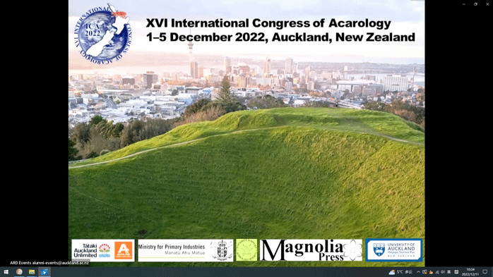 应第16届国际蜱螨学大会(The XVI International Congress of Acarology 2022ICA 2022)会议主席ZHI-QIANG教授的邀请,yl6809永利官网孙恩涛教授和2019级卫生检验与检疫专业本科生方颖同学参加了2022121-5新西兰奥克兰举行的第16届国际蜱螨学大会本次大会以acarological frontiers为主题展示了自2018年第十届国际蜱螨学会议以来蜱螨学科所取得的成果为世界各地的蜱螨工作者提供了一个相互交流和学习的平台。为积极响应国家防疫政策,会议全程在线上进行。