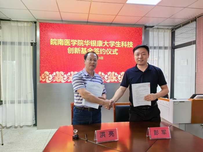 仪式上,彭军和洪亮分别代表企校双方在协议书上签字。根据协议,安徽华银康医学检验所有限公司在yl6809永利官网设立大学生科技创新基金,基金每年资助3万元、资助人数10人,用于大学生开展科学研究活动。