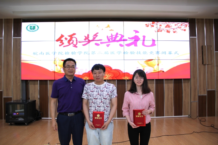 本次赛程分为理论考核和技能操作考核两个阶段,比赛内容涉及3个常规检验项目,需要参赛选手连续独立在规定时间内完成。赛场上,选手们聚精会神,沉着应战,有条不紊地完成手中的操作,展现了较为扎实的理论功底和实践水平。同时,裁判员严格按照评分标准,细致观察选手操作,对选手的表现进行打分。经过一天的激烈角逐,汤旗和王炎康拔得头筹,荣获一等奖,朱良宇等同学获得二等奖,俞璐等同学获得三等奖,王波等15名同学获得单项奖。