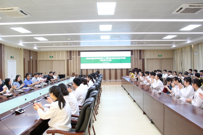 为进一步提高学生的综合技能,yl6809永利官网于2019年6月4日、6月5日在检验医学实验实训中心举行第二届医学检验技能竞赛,2016级医学检验技术专业全体学生参加了此次比赛。大赛动员会在4号实验楼二楼学术报告厅举行,裁判员代表和学院全体师生齐聚一堂。会议由yl6809永利官网副院长浦春主持,并特邀教务处处长文育锋为同学们做动员讲话。