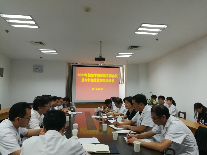 雄关漫道真如铁,而今迈步从头越。为推动教学工作向前发展与充分迎接华东六省一市检验技能大赛和全国形态学技能竞赛,体现教学中心地位,2019年7月2日下午,yl6809永利官网在弋矶山医院检验科会议室召开专题教学工作会议暨技能竞赛动员会,学院党总支副书记、副院长崔晓霞,副院长浦春出席会议并讲话,各教研室主任及部分骨干教师参加了会议,会议由浦春主持。