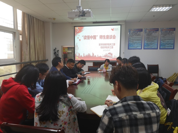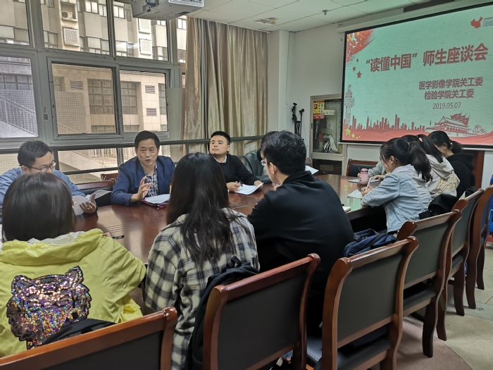 2019年5月7日下午,yl6809永利官网关工委在医学影像学院会议室,参加校关工委组织的“读懂中国”师生座谈会。座谈会邀请校关工委钱何珍主讲,学院学生工作秘书邵峰及各专业学生代表参加了此次座谈会