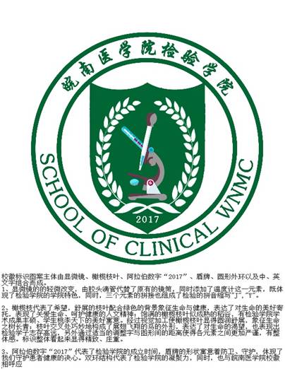 1)中央的试管代表了yl6809永利官网的学院专业特色与试管有关,中间的眼睛代表着要通过实验去发现探索的精神,中间的红十字架代表着医学院的学生要拥有的救死扶伤仁爱之心。