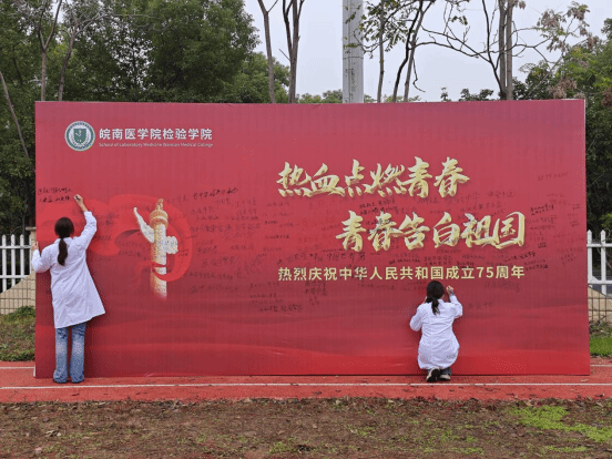 校歌回荡,梦想起航。全体师生齐声歌唱校歌《为人类托起明天的太阳》,嘹亮的歌声把我们的思绪拉回到赭山旁、校园中,共同感悟学校高质量发展带来的新气象。活动最后,检验学子有序前往告白墙,书写对祖国的满腔热爱、衷心祝愿,以热血点燃青春,用青春告白祖国。