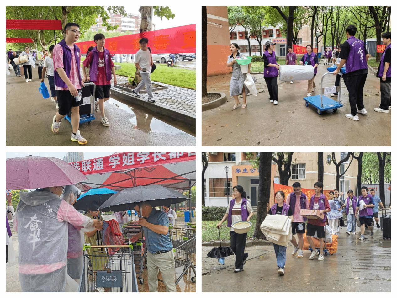 同时,志愿者们活跃于校园各个角落,积极主动地协助新生搬运沉重的行李,并引导他们前往宿舍楼。尽管大雨瓢泼,志愿者们的热情却丝毫不减,他们以实际行动践行着无私奉献的精神,使得初入校园的新生在陌生的环境中即刻感受到学长学姐们诚挚的关爱。一位外地新生满怀激动地表示:“刚踏入学校就有学长学姐前来帮忙搬运行李,内心十分温暖,我对即将开启的大学生活充满了期待。”