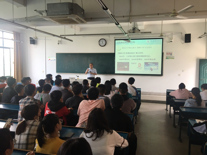 9月24日上午,yl6809永利官网卫生检验与检疫教研室主任孙恩涛教授在2303教室为2020级卫生检验与检疫新生开展专业思想教育。孙恩涛详细介绍了卫生检验与检疫专业的社会作用、课程内容和未来就业去向,通过列举该专业几位优秀学子的发展情况,激励新生们不负青春韶华,努力提升自我价值,在大学成就更优秀的自己。