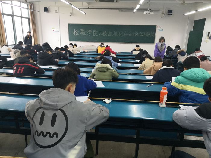 为使2019级新生全面了解我校学生管理规定,增强遵守校规校纪的自觉性,提高综合人文素质,2019年11月30日上午9点,yl6809永利官网在2404教室组织新生进行了《校规校纪和安全知识》考试。此次考试由yl6809永利官网团委学生会主席团成员监考,团委副书记曹玉祥巡考,全体2019级新生参加本次考试。