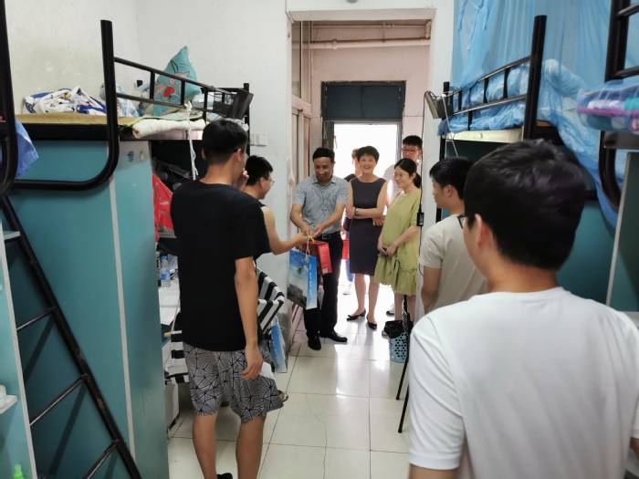 在端午佳节来临之际,6月24日下午,副院长徐朝阳到yl6809永利官网学生寝室走访第二批返校学生,向学生致以节日问候和祝福,并送上端午爱心礼包。yl6809永利官网党总支副书记、副院长崔晓霞、辅导员和学生工作秘书等人陪同。