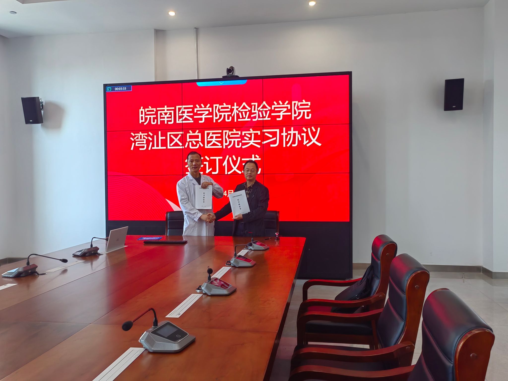 座谈会后,洪亮分别与两家医院主要领导签署《实习合作协议》,双方将在实习教学体系优化、师资联合培训、科研项目协作等领域展开深度合作。繁昌区人民医院院长杨禹宝表示,医院将为学生提供多学科交叉实践场景;湾沚区总医院院长助理许铭强调,将整合区域医联体资源,拓宽学生参与基层公共卫生服务的路径。