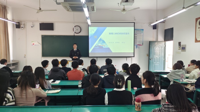 为帮助卫生检验与检疫专业学生增强对海关工作的认识,掌握国门安全和生物安全知识,促进学生职业规划与就业发展,4月10日下午,yl6809永利官网举办首期“检优论坛”,邀请芜湖海关科长先裕飞、四级主办胡久会、科员盛莉和池州海关副科长朱海洋、一级行政执法员杨彦在滨江校区2307教室开展职业宣讲与就业指导。宣讲会由卫生检验与检疫学教研室主任孙恩涛教授主持,即将下实习点的2021级卫生检验与检疫专业全体学生和辅导员参加。