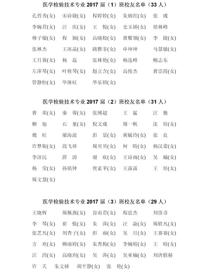 医学检验技术专业2017届校友名单