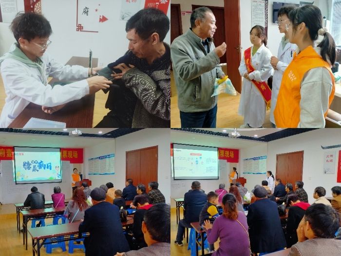 同时为了帮助更多社区居民更好的了解自己的健康情况,志愿者们在学府社区广场搭建起了临时义诊点。在测量血压的同时,也向社区群众普及了糖尿病和高血压的预防、危害及治疗方法等,并发放了糖尿病宣传知识手册,对他们的生活作息给出合理建议。